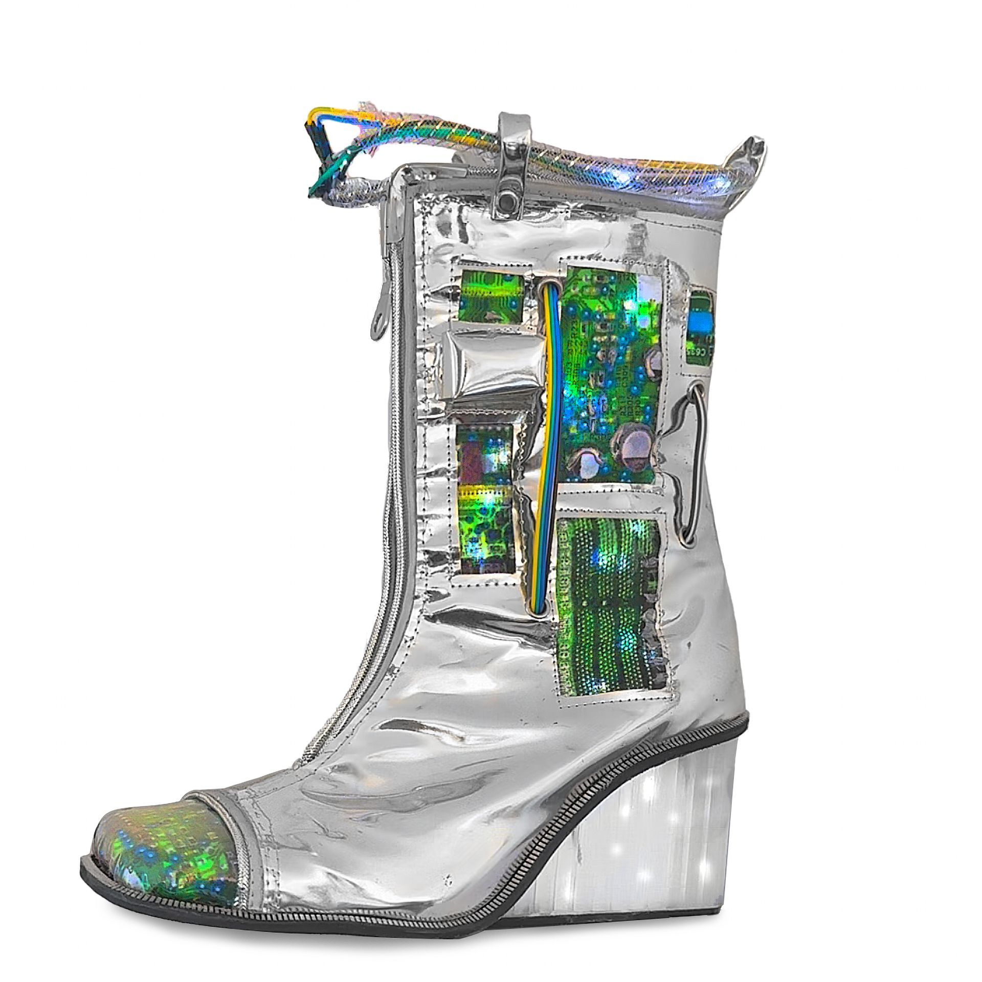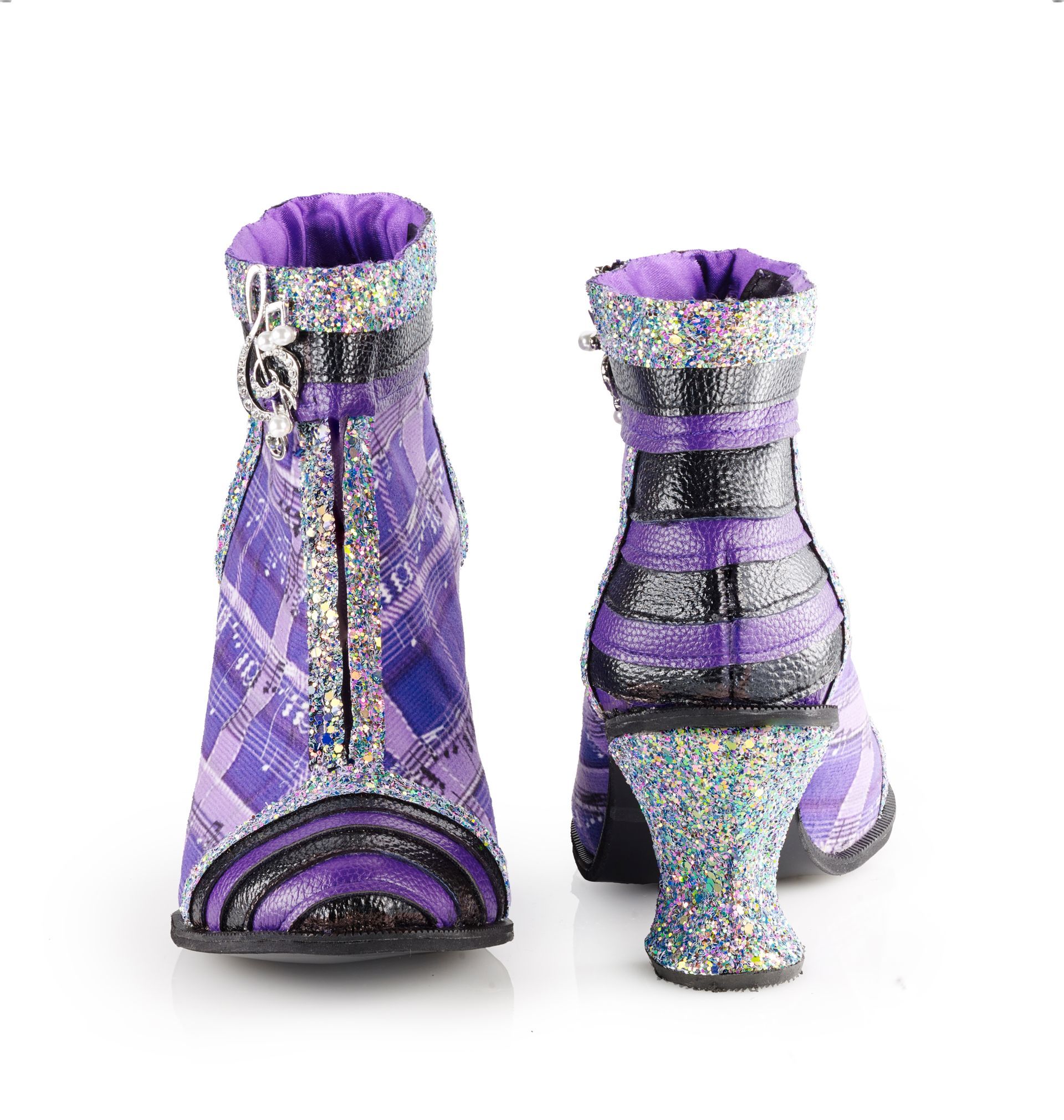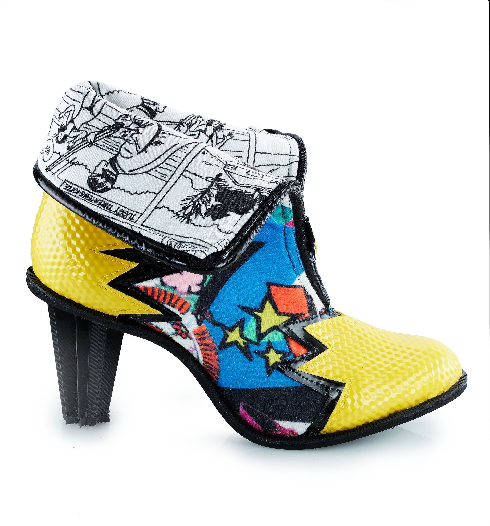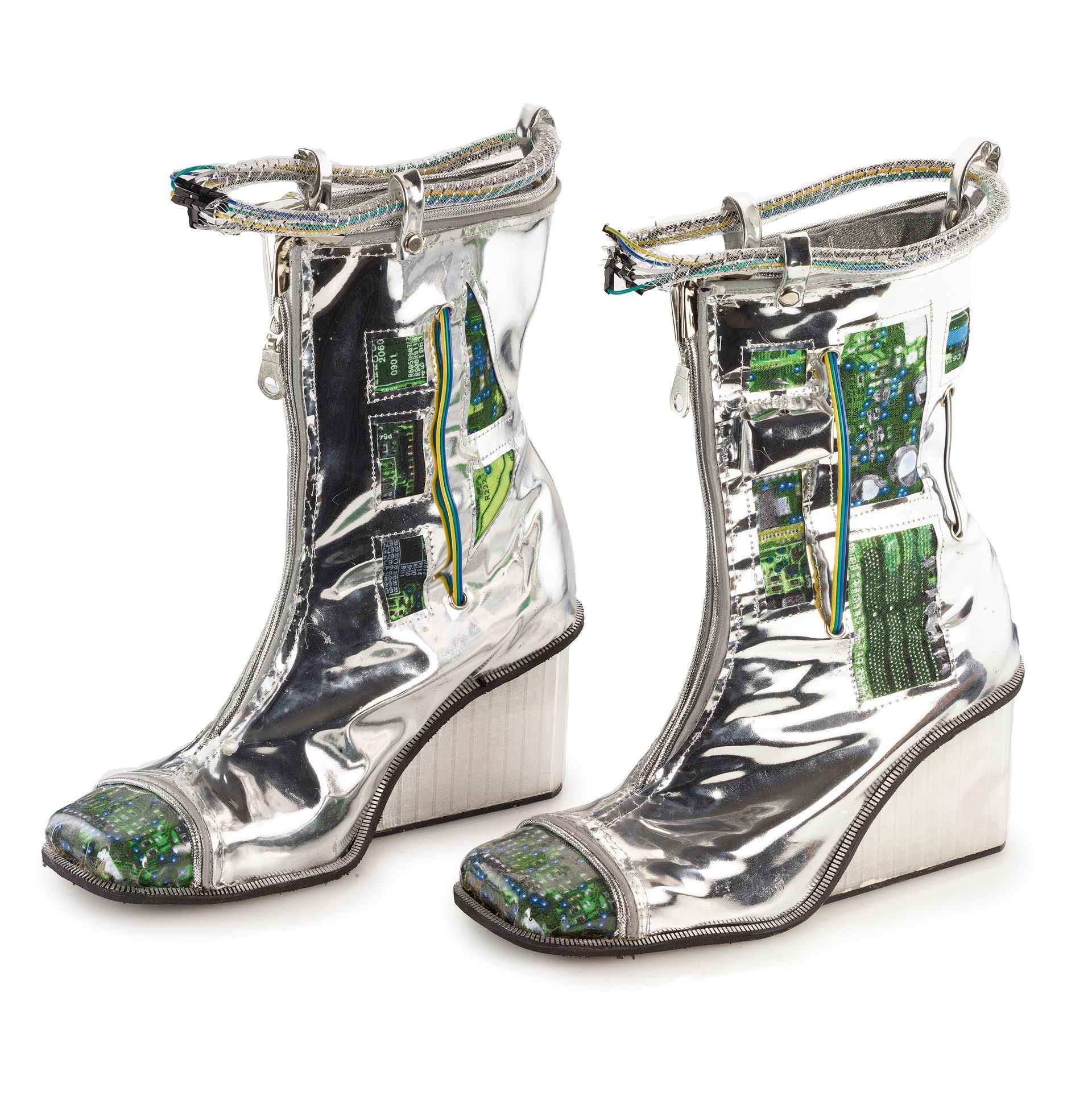 Eilidh's theme for her outfit and shoe designs bore elements from David Bowie. Eilidh designed the shoes and together we worked them into a manageable production with the tools and supplies available. I enjoyed the challenge this commission brought, having to find new techniques for building some designs, including the challenge of designing a unique platform and heel for the sandal. The shoes complimented her outfits perfectly.