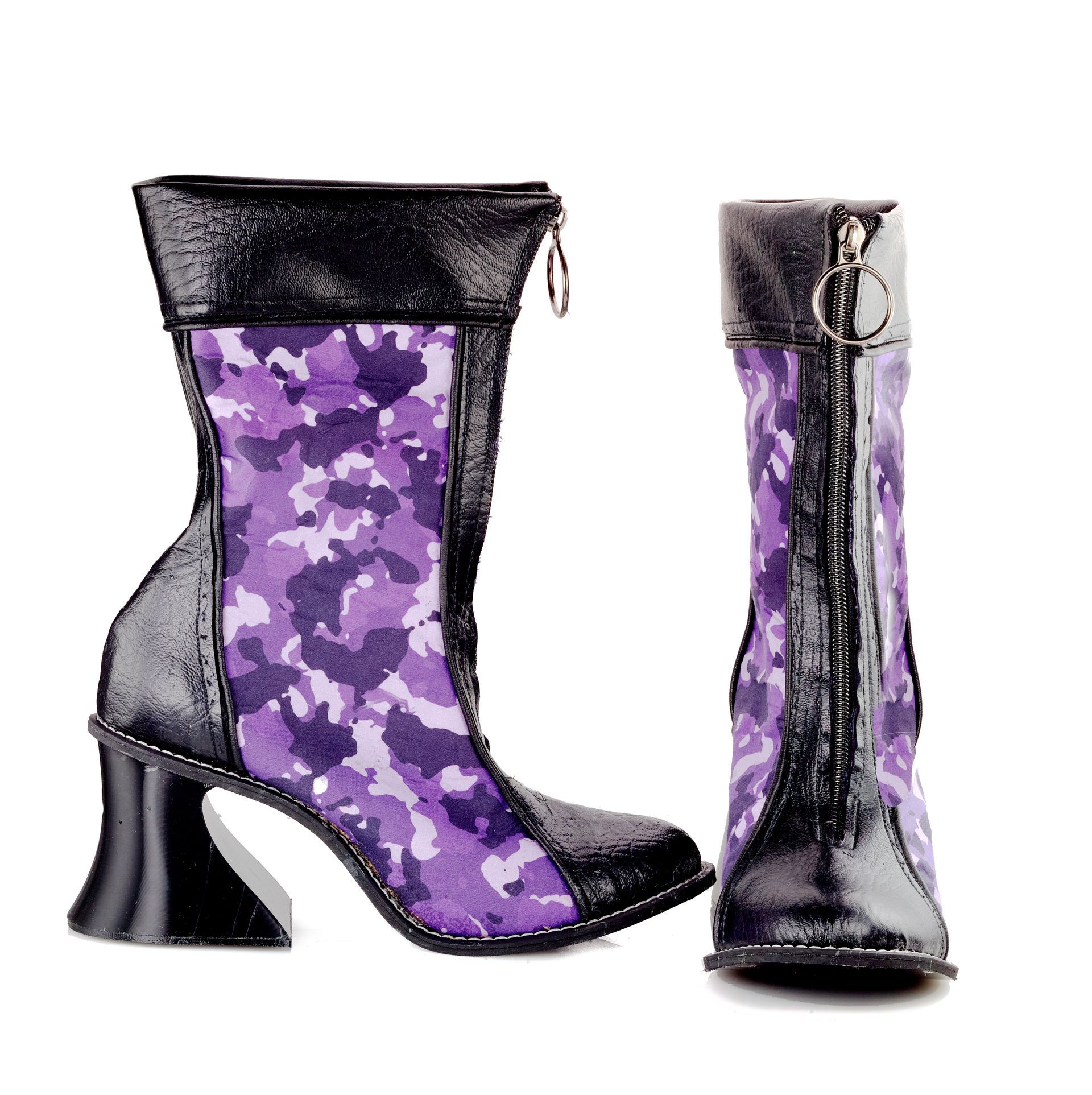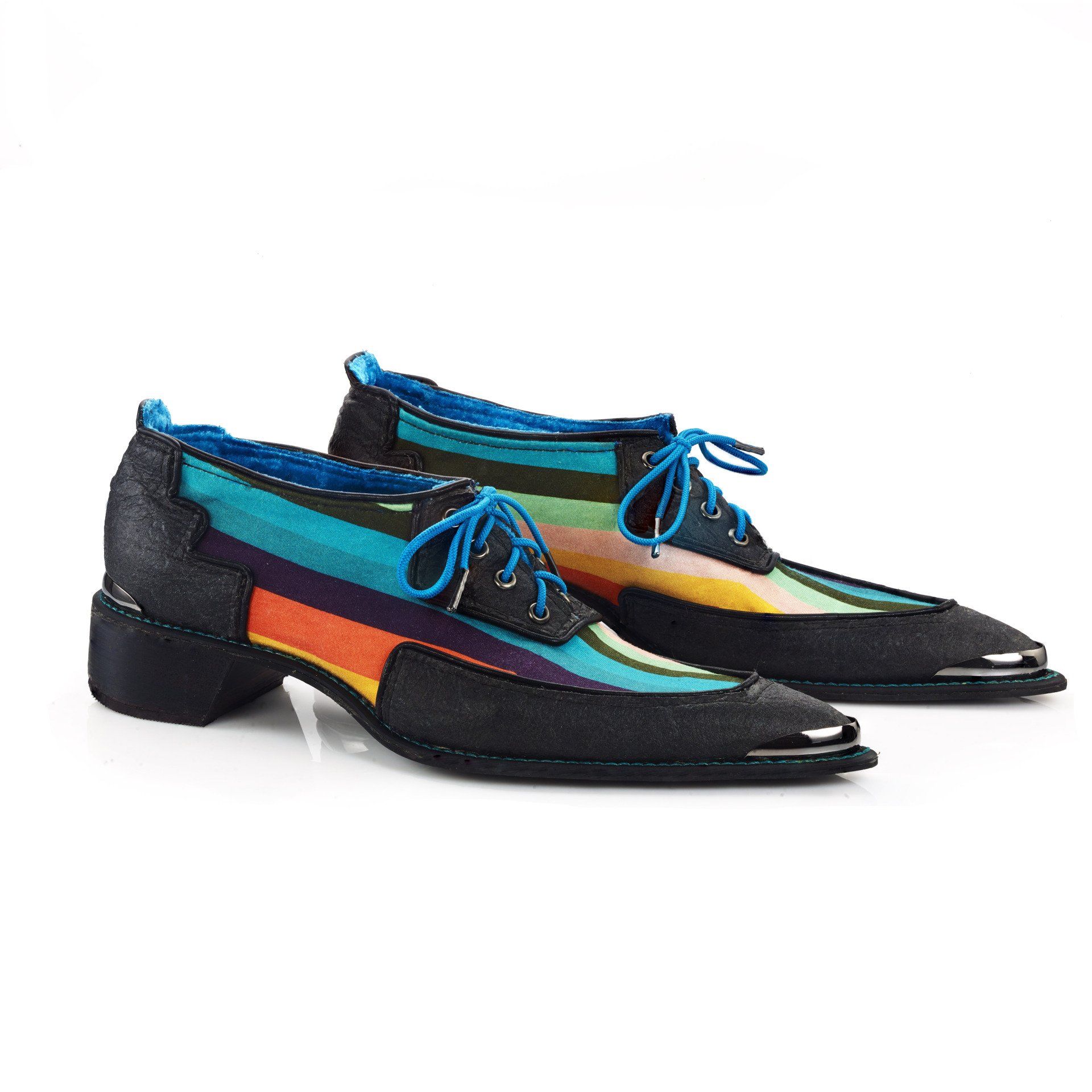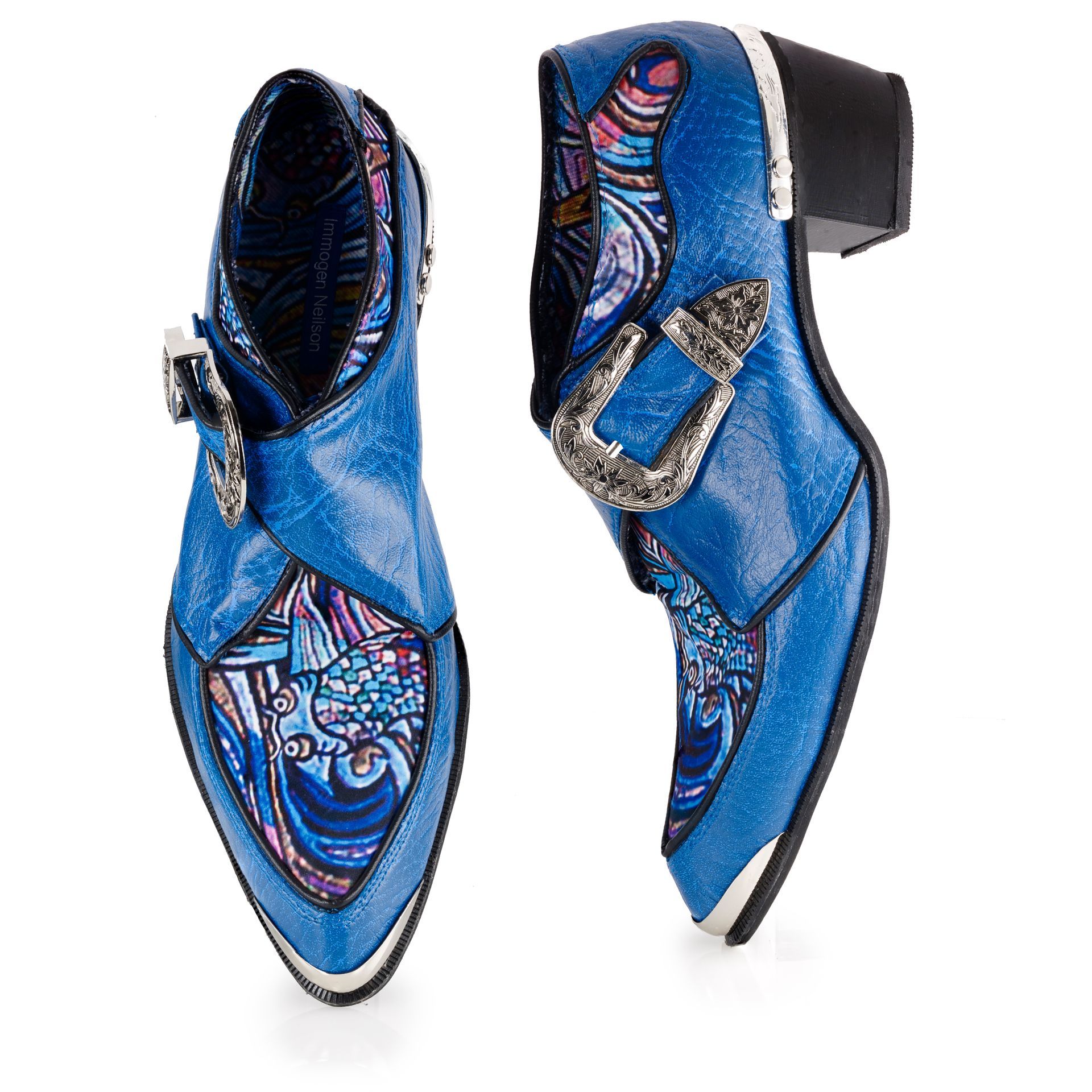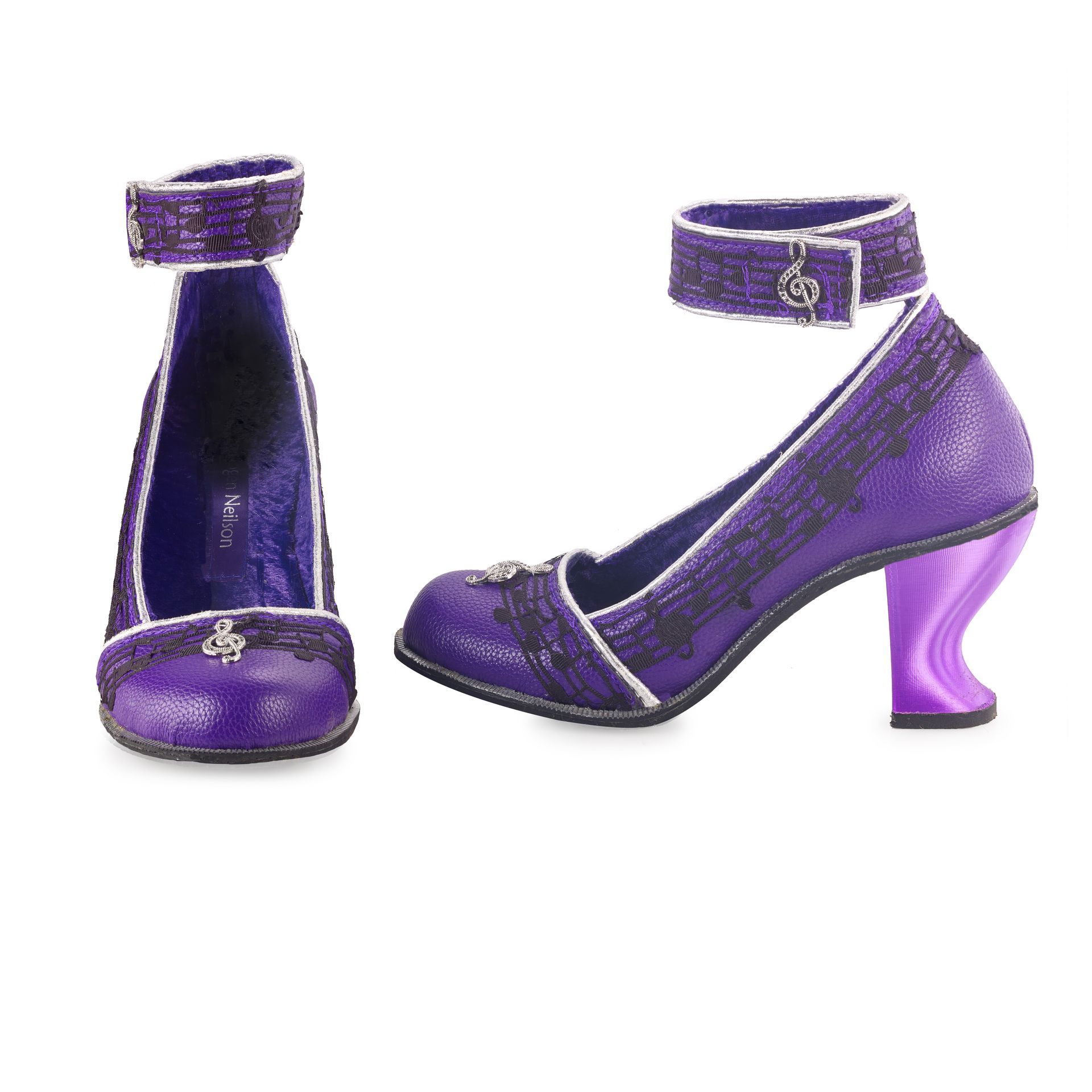 Eilidh's theme for her outfit and shoe designs bore elements from David Bowie. Eilidh designed the shoes and together we worked them into a manageable production with the tools and supplies available. I enjoyed the challenge this commission brought, having to find new techniques for building some designs, including the challenge of designing a unique platform and heel for the sandal. The shoes complimented her outfits perfectly.