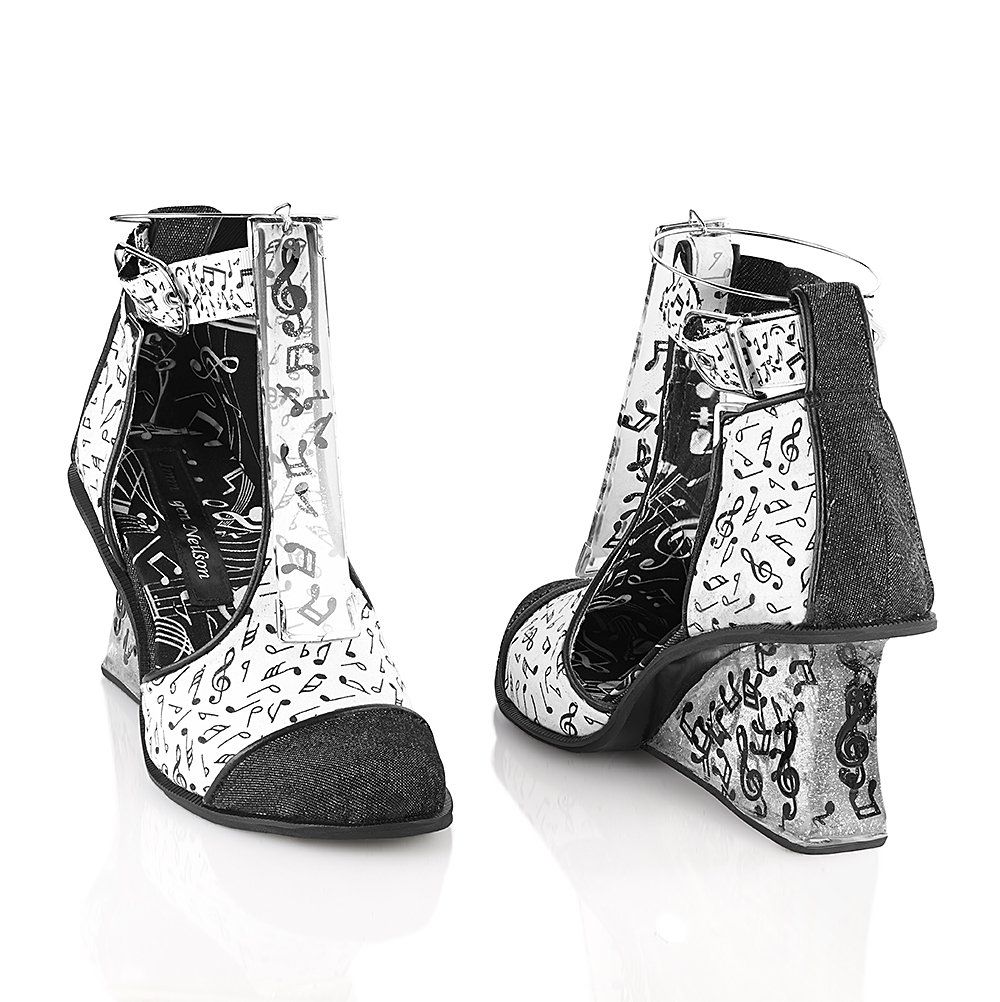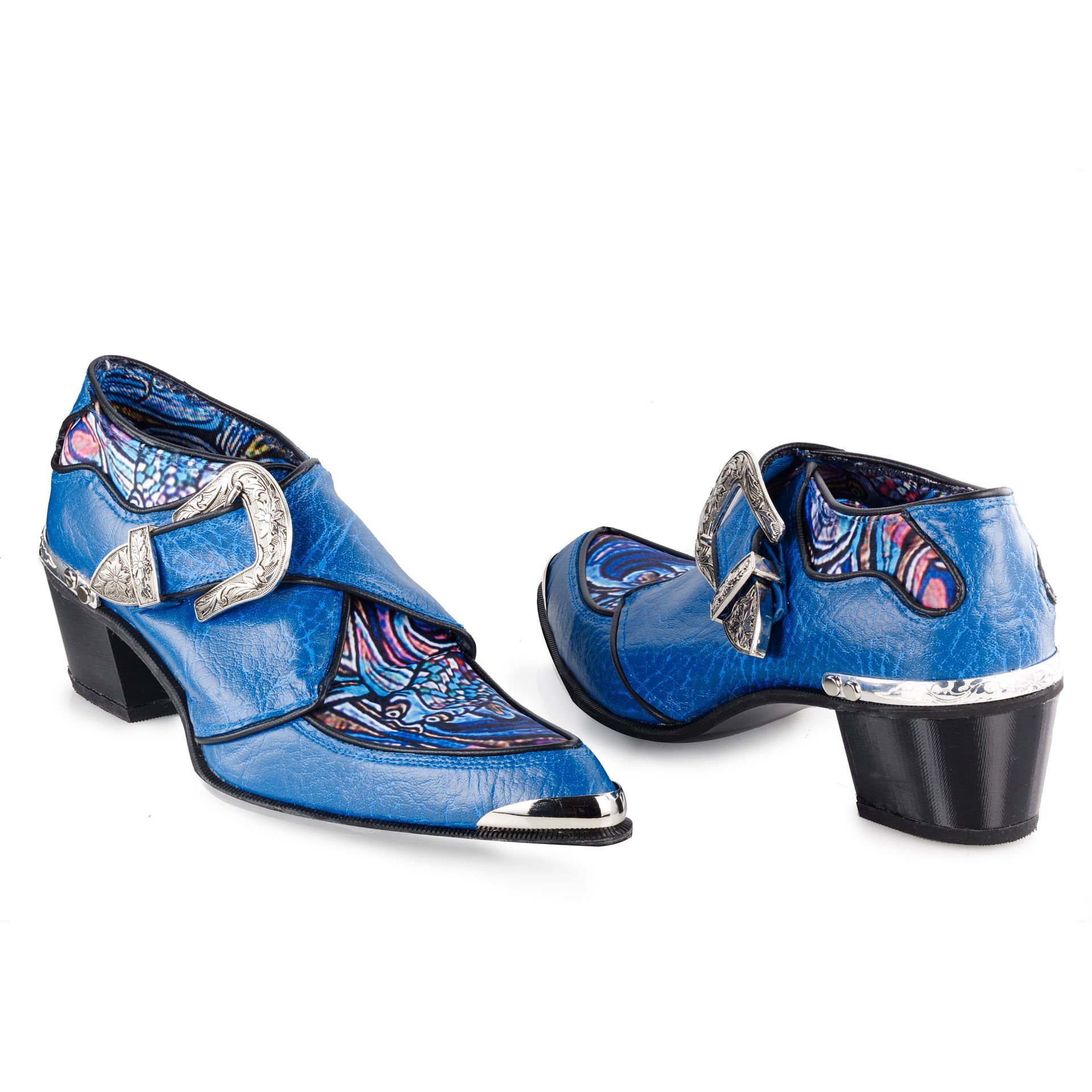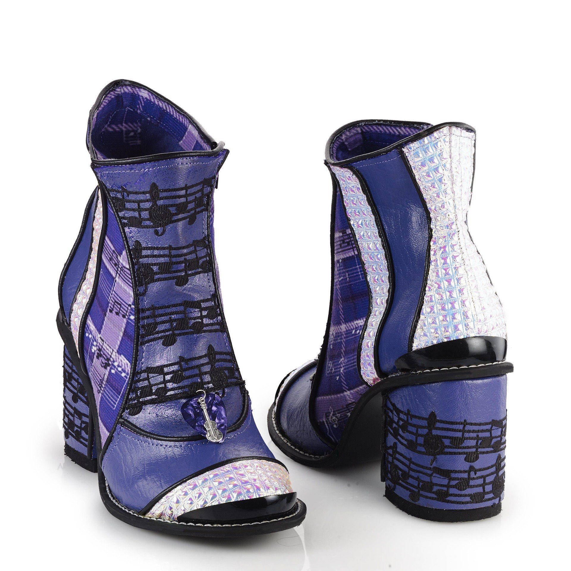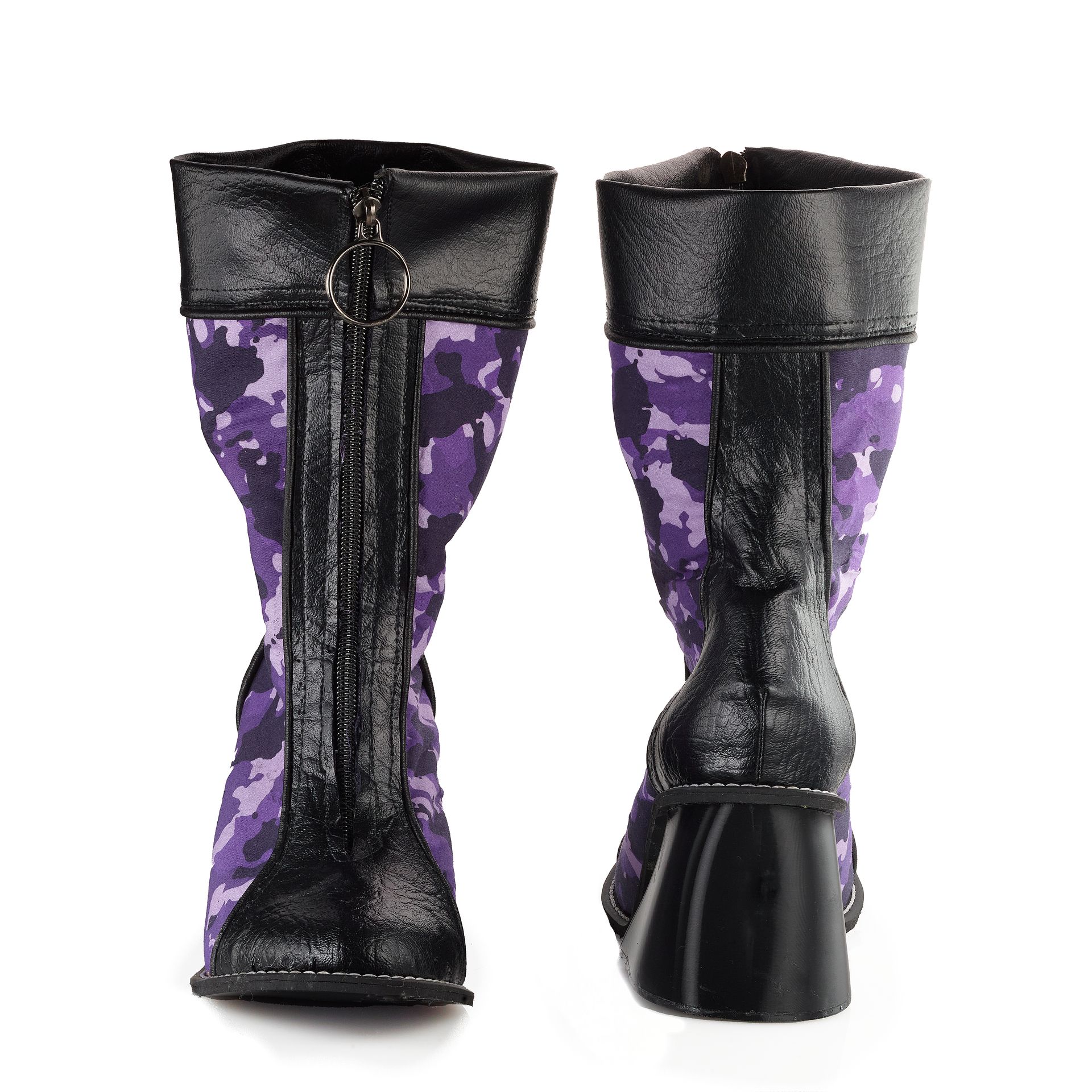 Eilidh's theme for her outfit and shoe designs bore elements from David Bowie. Eilidh designed the shoes and together we worked them into a manageable production with the tools and supplies available. I enjoyed the challenge this commission brought, having to find new techniques for building some designs, including the challenge of designing a unique platform and heel for the sandal. The shoes complimented her outfits perfectly.
